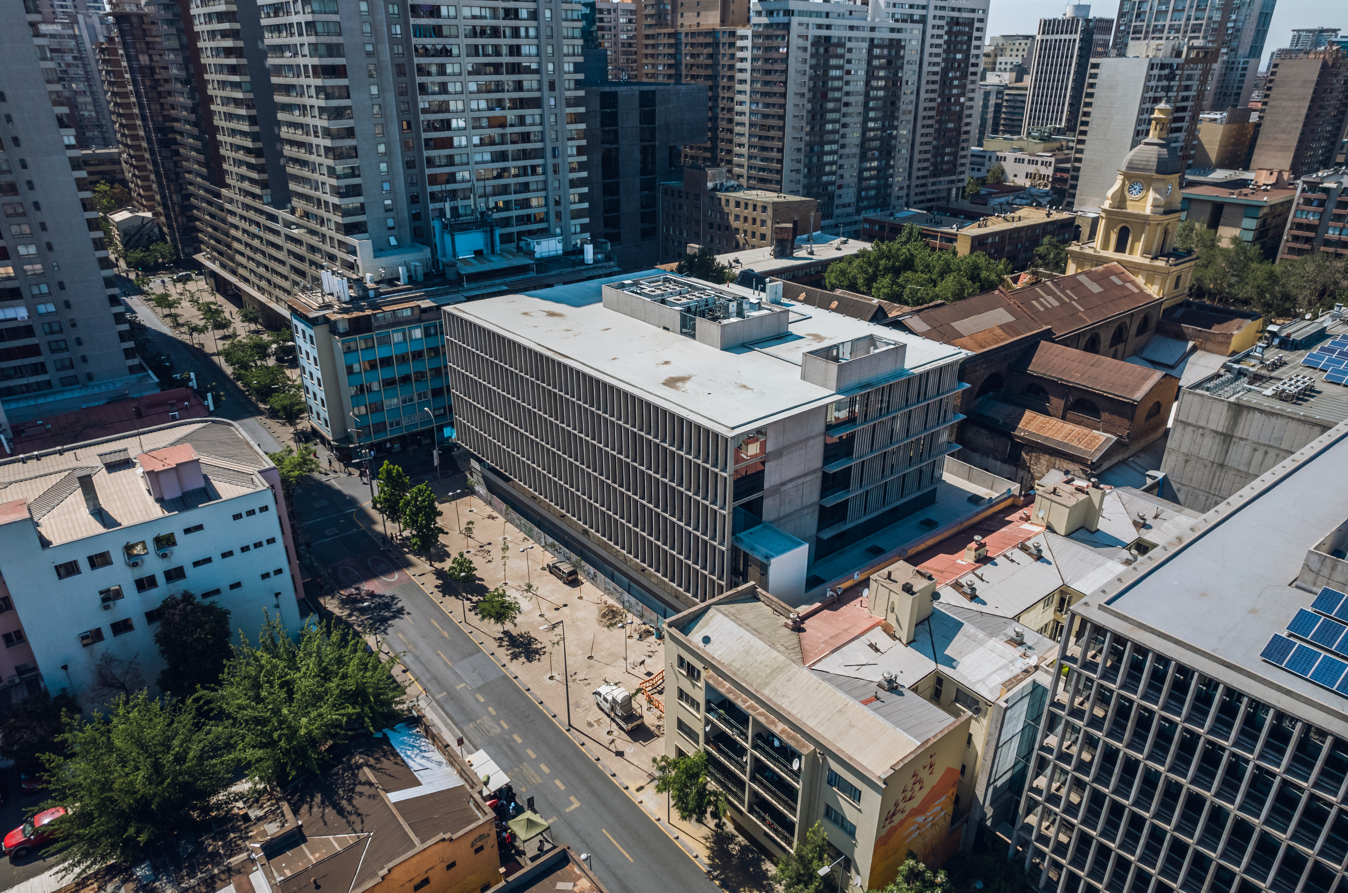 Edificio Multifamily ubicado a solo pasos de la Alameda, siendo una céntrica ubicación en el sector con tres estaciones de Metro a solo cuadras del edificio. Además en el sector existen varios edificios residenciales habitados y otros aún en construcción lo que asegura un importante flujo de personas a diario.
